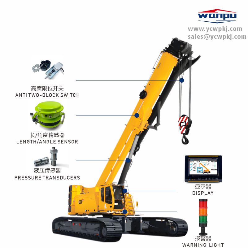 The lifting structure components of crawler telescopic boom cranes and mobile cranes are fundamentally similar. When selecting load moment indicator, attention should be paid to the two critical sensors in the load moment limiter: the length sensor and the load sensor.